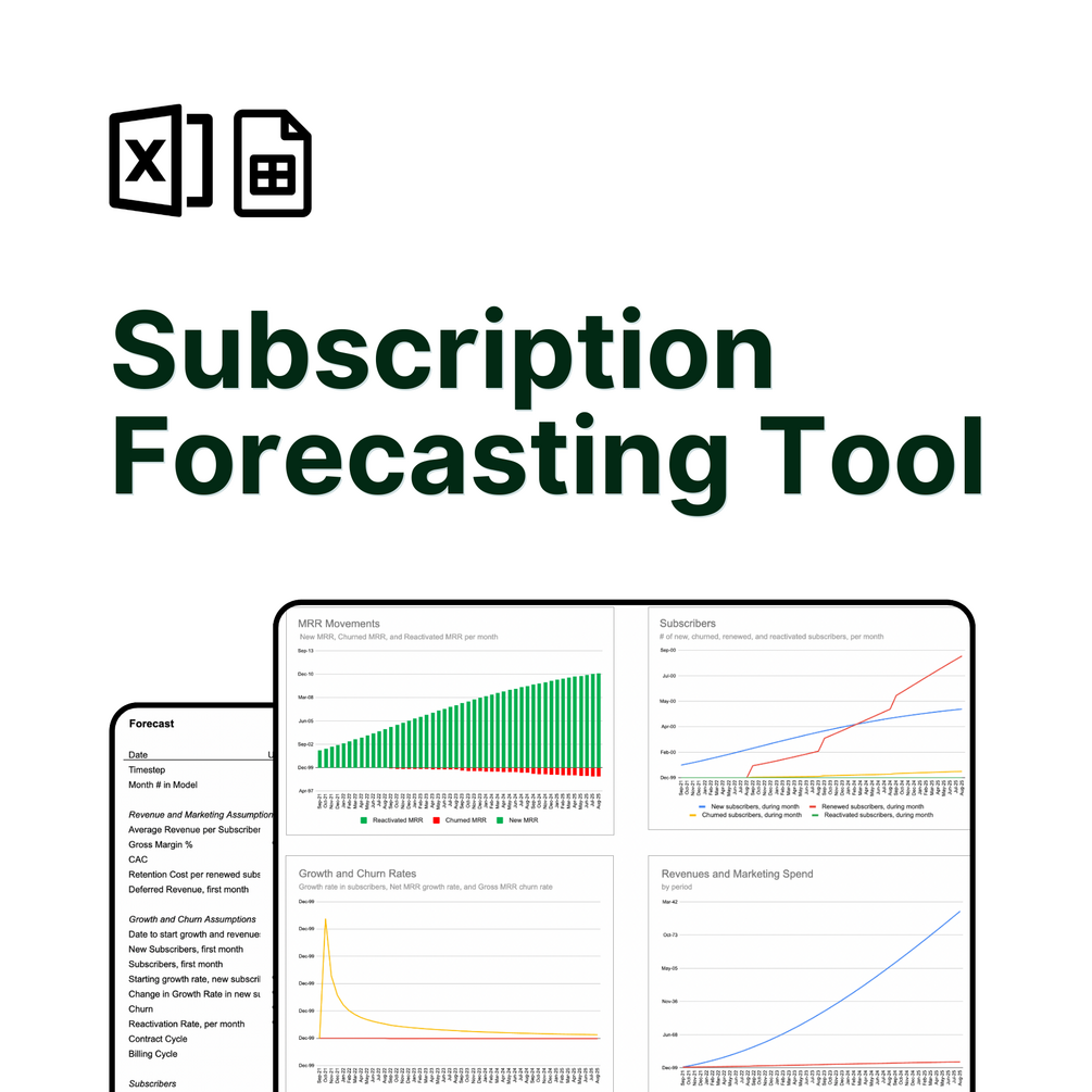 Simple and flexible tool for forecasting SaaS and subscription revenue models.